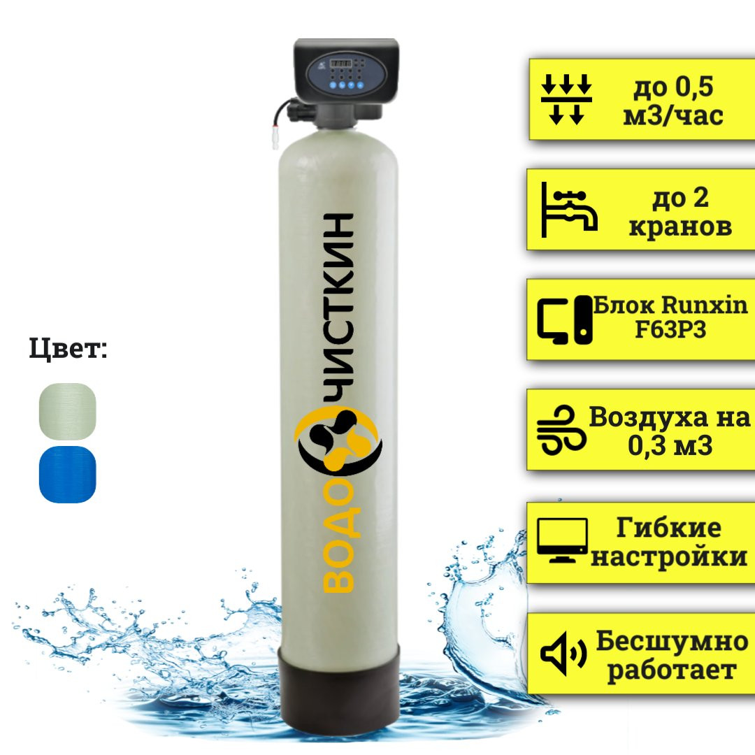 Комплект оборудования аэрации воды на базе аэрационной колонны 08х44, дренажно-распределительного узла и автоматизированного контроллера для фильтров Runxin. Аэрационная колонна OX 0844P предназначена для принудительного насыщения очищаемой воды кислородом, необходимым для обеспечения процессов обезжелезивания в системах фильтров с каталитической загрузкой. В качестве так называемой "упрощенной системы аэрации", данная аэрационная колонна приобрела высокую популярность в использовании для очистки воды из скважины, колодца и прочих источников потребления воды.
