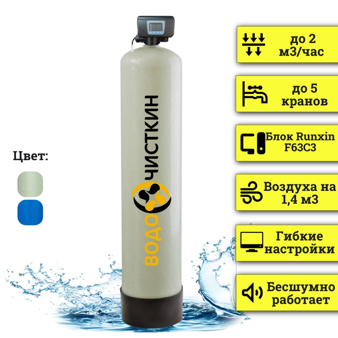 Комплект оборудования аэрации воды на базе аэрационной колонны 14х65, дренажно-распределительного узла и автоматизированного контроллера для фильтров Runxin. Аэрационная колонна OX 1465P предназначена для принудительного насыщения очищаемой воды кислородом, необходимым для обеспечения процессов обезжелезивания в системах фильтров с каталитической загрузкой. В качестве так называемой "упрощенной системы аэрации", данная аэрационная колонна приобрела высокую популярность в использовании для очистки воды из скважины, колодца и прочих источников потребления воды.