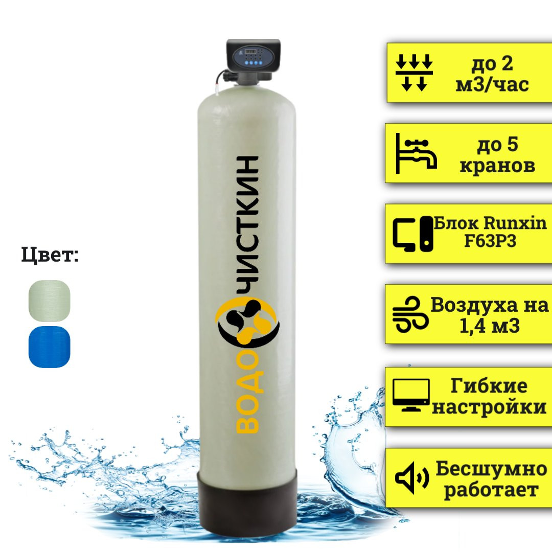 Комплект оборудования аэрации воды на базе аэрационной колонны 14х65, дренажно-распределительного узла и автоматизированного контроллера для фильтров Runxin. Аэрационная колонна OX 1465P предназначена для принудительного насыщения очищаемой воды кислородом, необходимым для обеспечения процессов обезжелезивания в системах фильтров с каталитической загрузкой. В качестве так называемой "упрощенной системы аэрации", данная аэрационная колонна приобрела высокую популярность в использовании для очистки воды из скважины, колодца и прочих источников потребления воды.