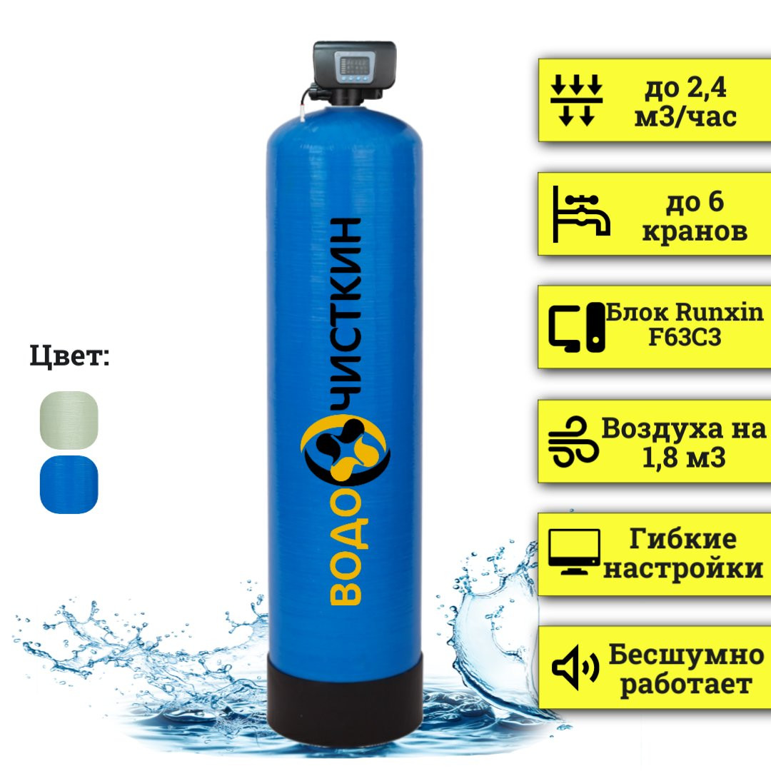 Комплект оборудования аэрации воды на базе аэрационной колонны 16х65, дренажно-распределительного узла и автоматизированного контроллера для фильтров Runxin. Аэрационная колонна OX 1665P предназначена для принудительного насыщения очищаемой воды кислородом, необходимым для обеспечения процессов обезжелезивания в системах фильтров с каталитической загрузкой. В качестве так называемой "упрощенной системы аэрации", данная аэрационная колонна приобрела высокую популярность в использовании для очистки воды из скважины, колодца и прочих источников потребления воды.