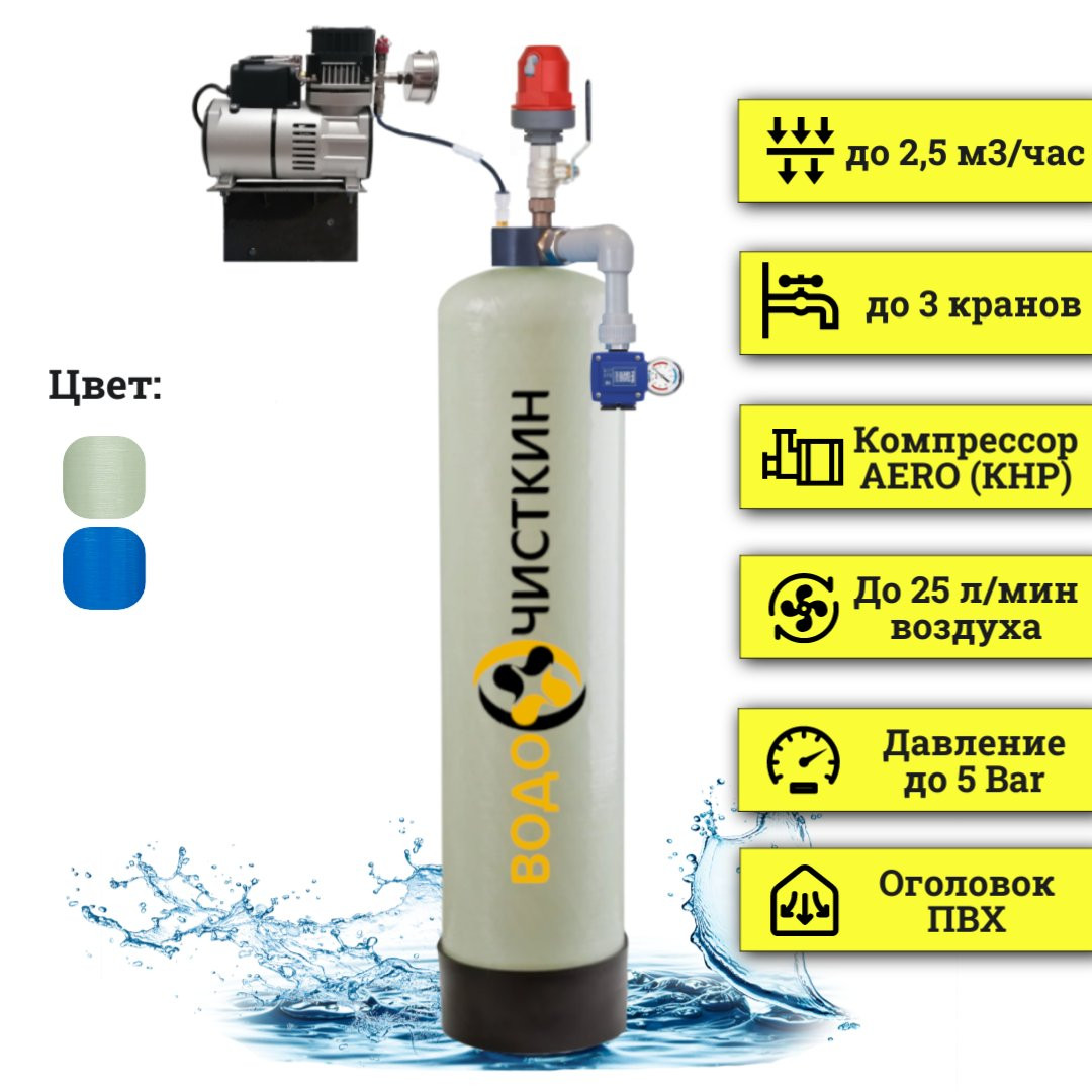 ARX 1354 TE – это автоматизированная и полностью укомплектованная система аэрации воды, предназначенная для принудительной об-работки воды воздухом в закрытых (напорных) системах обезжелезивания, деманга-нации или осветления воды. Основываясь на одном из наиболее эффективных и эко-номически выгодных методах обезжелезивания воды, когда железо и марганец извлекаются посредством «кислородного окисления и последующего осаждения», система аэрации ARX 1354 TE применяется в качестве окислительной ступени, и, для интенсивного обогащения воды ионами кислорода, она генерирует из атмосфе-ры и подает в воду до 25 л/мин чистого воздуха, что на базе корпуса 13х54 дюйма поз-воляет ей обеспечить скорость фильтрации до 2,5 м3/час. Также, помимо выполнения окислительного воздействия, система аэрации воды обеспечивает эффективную очистку от ряда неблагоприятных газообразных соединений, таких как: сероводород, аммиак, углекислый газ, и, что не мало важно для окисления железа и в особенности марганца, она не значительно повышает значение уровня Ph. Система аэра-ции ARX 1354 TE экологически чиста, экономична и абсолютно без-опасна, она превосходно подойдет для обезжелезивания скважинной, колодезной или общегородской воды, как в питьевых или хозяйственно-бытовых нуждах (в квартире, загородном доме, на даче, в коттедже), так и в малых или больших объектах коммер-ческого, промышленного или энергетического назначения.