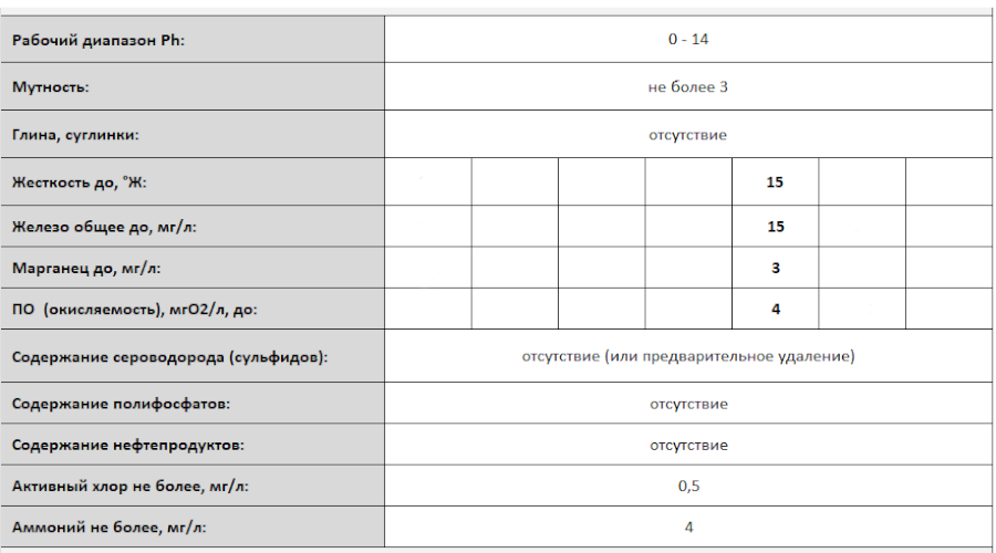 - Железо - Эффективное удаление до 15 мг/л растворенного железа без применения дополнительных окислителей