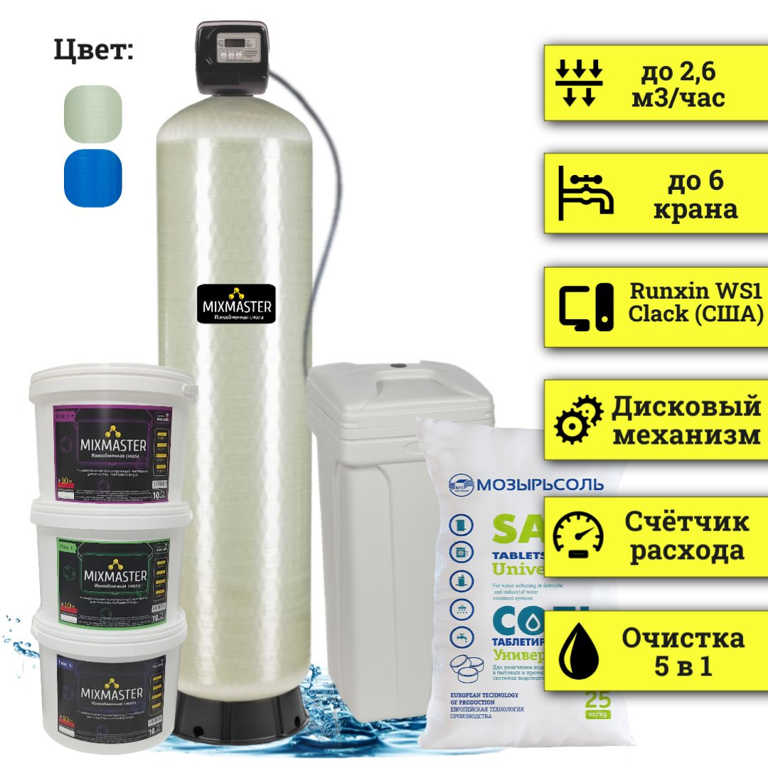 Цена на комплект cтанции обезжелезивания воды из скважины для дома MIXMASTER 1665-TC включает: