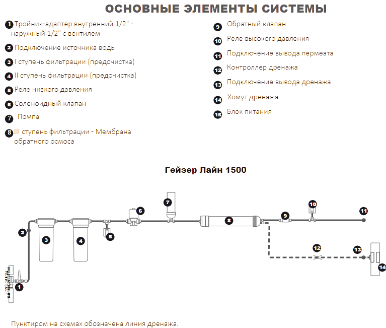 Этапы очистки обратного осмоса гейзер лайн (1500):