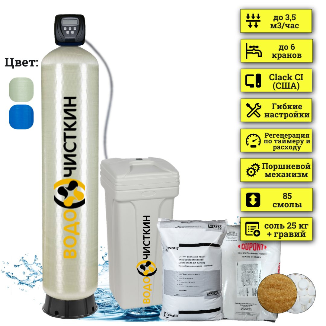 Фильтр для жесткой воды WSLW 1465CI представляет собой автоматизированное решение, разработанное для основного содержания ионов и магния, которые обуславливают жесткость воды и провоцируют образование накипи в водопроводной, скважинной и технической воде. Эта система, использующая модифицированную технологию ионного обмена для снижения жесткости воды, оснащена 85 литрами ионообменной смолы и может в автоматическом режиме обрабатывать до 3,5 кубических метров воды в час, снижая жесткость до небольших уровней (около 0,1 мг/л). Это обеспечивает надежную защиту оборудования от образования твердых и вредных отложений.