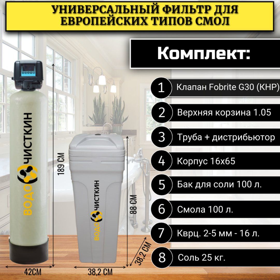 - Объём солевого бака (фидера)100 л.