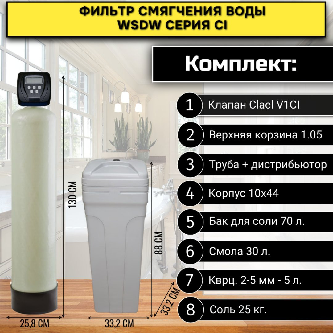 Цена на фильтр смягчения воды в частном доме WSDW 1044CI включает: