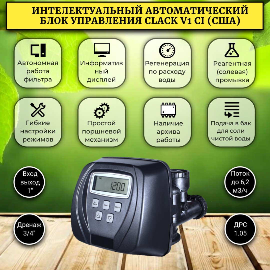 - Для автоматической работы и управления фильтра смягчения воды WSDW 1044CI используется надежный и универсальный блок управления Clack V1CI , изготовленный в Соединенных Штатах.