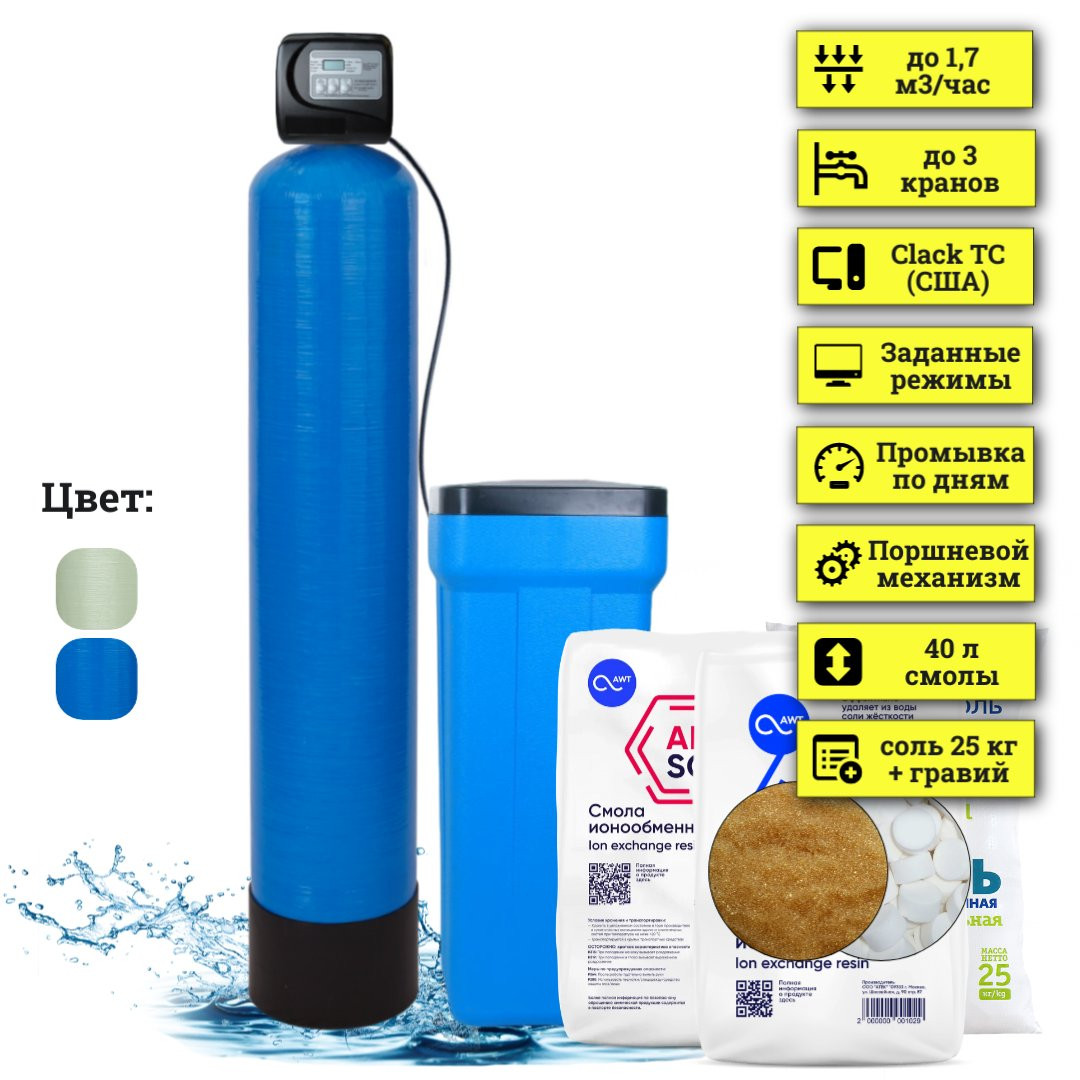 Цена системы умягчения для частного дома WSDW 1054 TC включает: